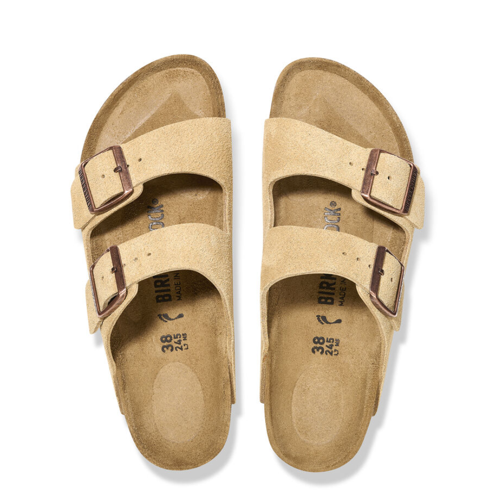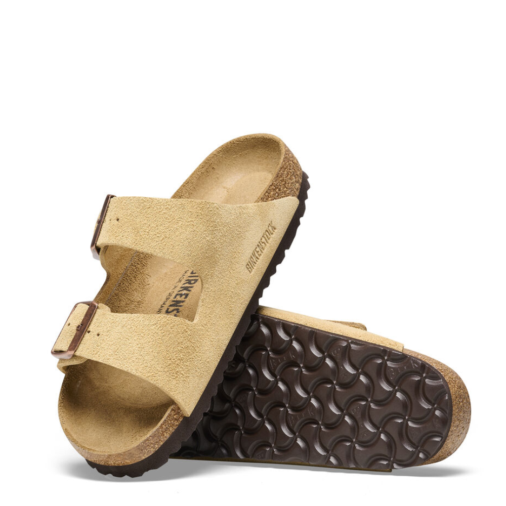 An icon of timeless design and legendary comfort, the Arizona sandal has been defining style since 1973. Classic, velvety suede gives the laid-back look that every season, any style appeal. Complete with legendary BIRKENSTOCK design elements, like a contoured cork-latex footbed for the ultimate in support.