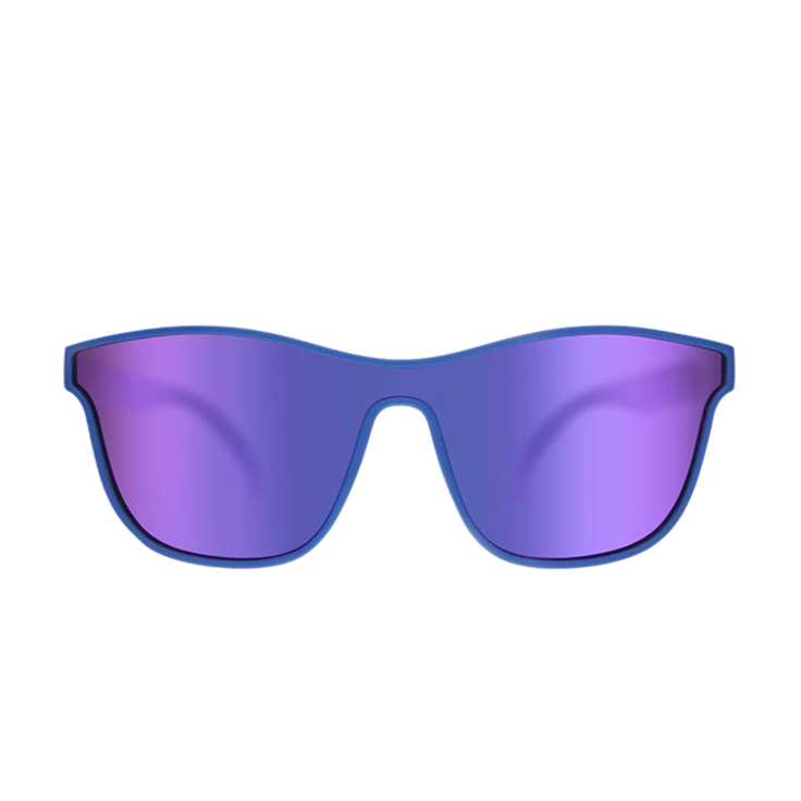In a nod to the future, these blue and purple sunglasses will teleport you to the enchanted rave of your dreams where you will dance until you are crystallized forever in a glittering dystopian paradise!!! VRGs with mirrored reflective lenses...the future is NOW.