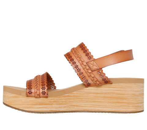 Dazzle your steps in floral style and comfort with Skechers Cali® Summers - Coastal Stroll. This vegan wedge sandal features a floral cutout synthetic upper with an adjustable back strap and a cushioned Luxe Foam® comfort footbed.