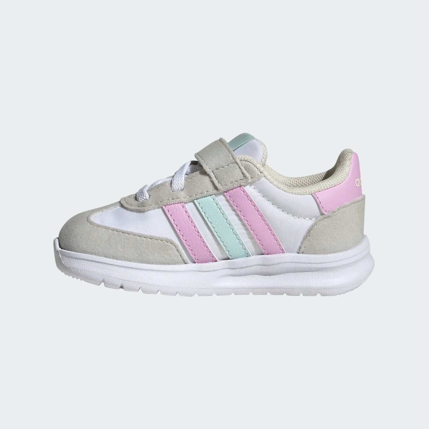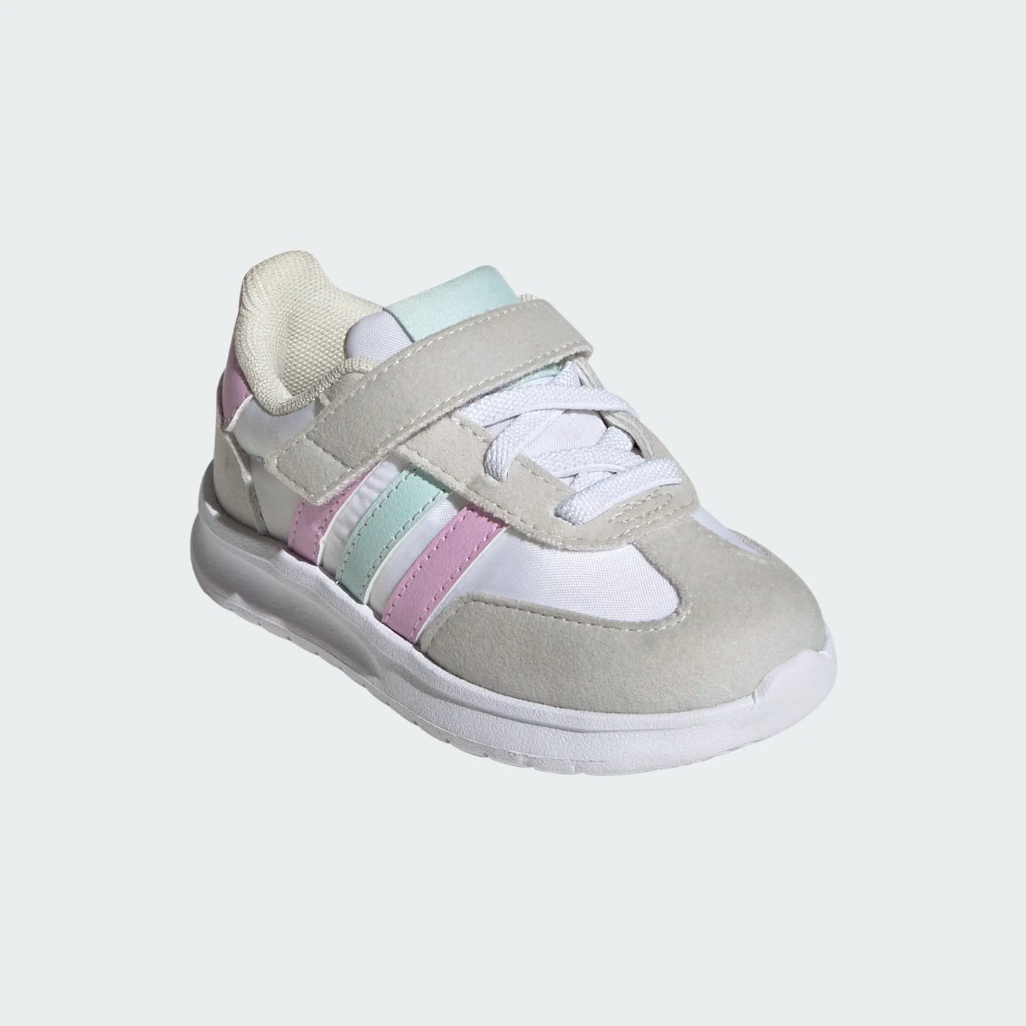 Let their feet run as wild as their imaginations. With retro-inspired running design and a soft, flexy EVA midsole and outsole, these infants' adidas shoes keep them comfortable whether exploring the backyard or moving at top speed down the street. A hook-and-loop strap makes for easy on and off.