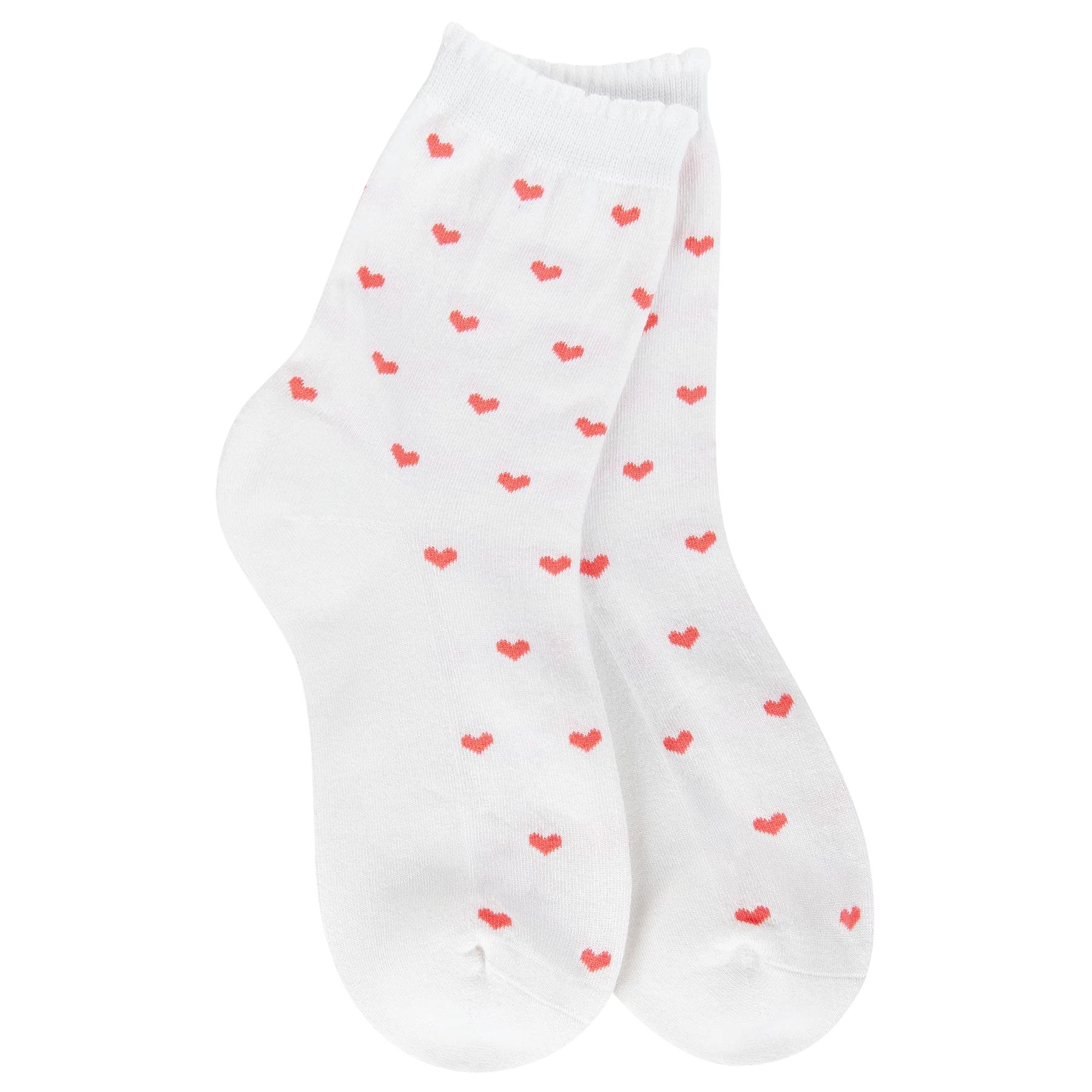 A soft scallop welt sprinkled with mini heart, this sock adds a charming touch to everyday looks.