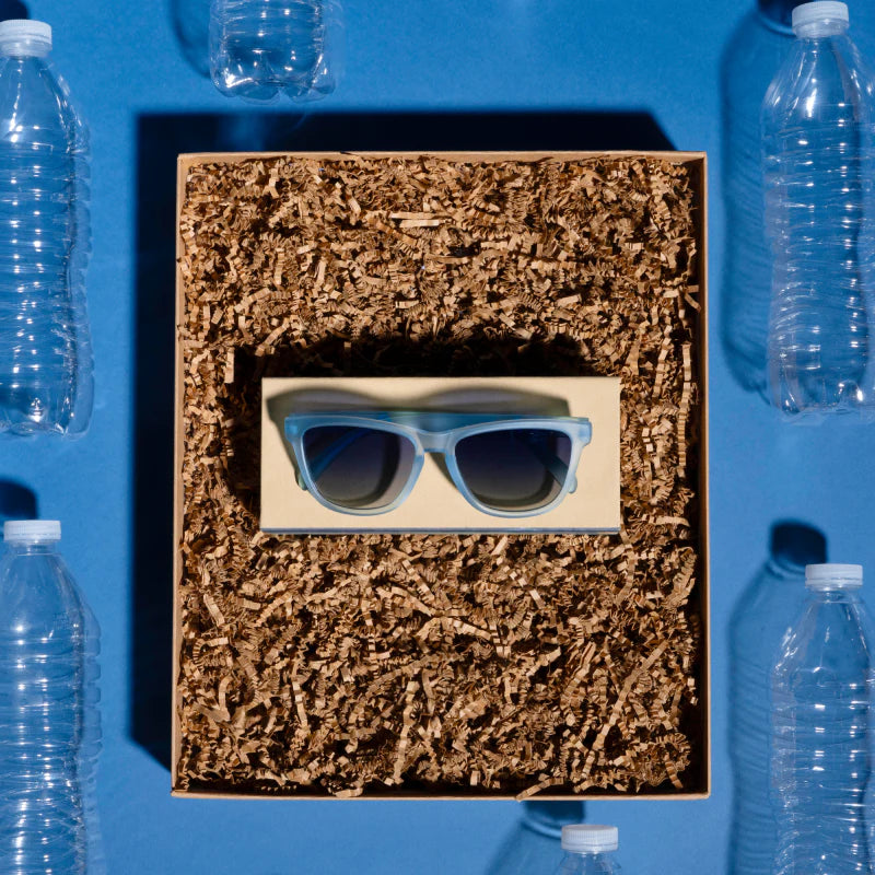 Put trash on your face! Made with 100% recycled plastic frames, a recycled aluminum logo, and a recycled paper box, these limited-edition sunnies are our favorite way to celebrate Earth Day. Snag these light blue sunglasses with blue gradient lenses, and Mother Nature just might slide in your DMs.